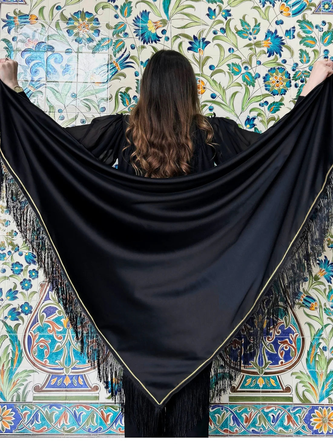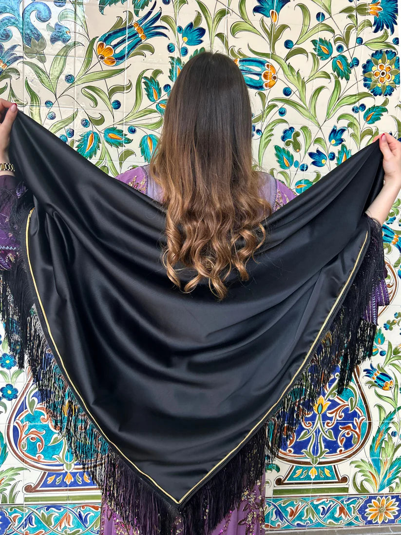 🌟 Châle Noir Élégance Dorée – Raffinement et Intemporalité 🌟
