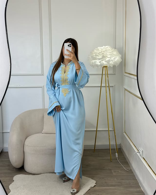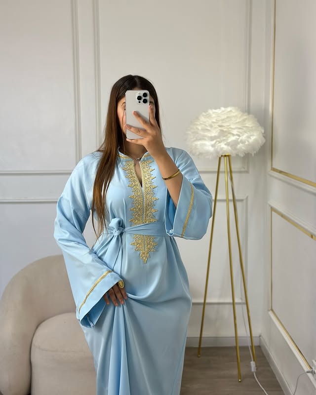 Plongez dans l’univers du raffinement avec ce caftan bleu ciel, une pièce qui évoque la douceur, la pureté et l’élégance orientale. Pensé pour les femmes modernes qui recherchent un équilibre entre tradition et tendance, ce modèle est parfait pour les grandes occasions : fiançailles, dîners, fêtes familiales ou cérémonies.